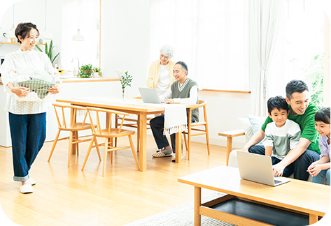 データ容量無制限・最大66台まで同時接続OKなので、家族皆でhome5Gをご利用可能。複雑な設定も要らないので、パソコンやスマホに疎いご家族の方でも、簡単にWi-Fiをお使いいただけます!